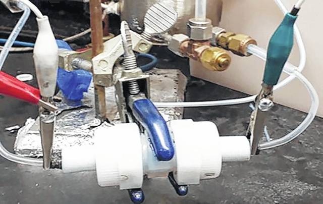 The team’s idea is to build an electrochemical cell that can clean tritium out of contaminated water by means of water electrolysis – useful to SRNL in the event that its storage facilities ever leak tritium into the groundwater and useful to Creager for his miniature cell specialty.