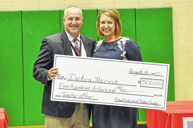 Debra Harris, a teacher at West End Elementary School, is the new Teacher of the Year, and Barrett Rampey, a technology assistant at Liberty Elementary School, is the new Support Employee of the Year.